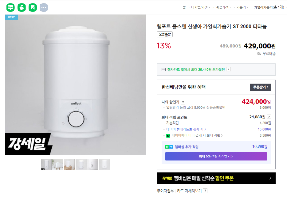 - 높은 가격: 다른 가습기에 비해 가격이 비싼 편입니다.(네이버 최저가 429,000원)