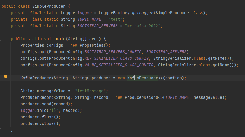 bootstrap.servers : 프로듀서가 데이터를 전송할 대상 카프카 클러스터에 속한 브로커의 호스트 이름:포트 1개 이상 작성한다.